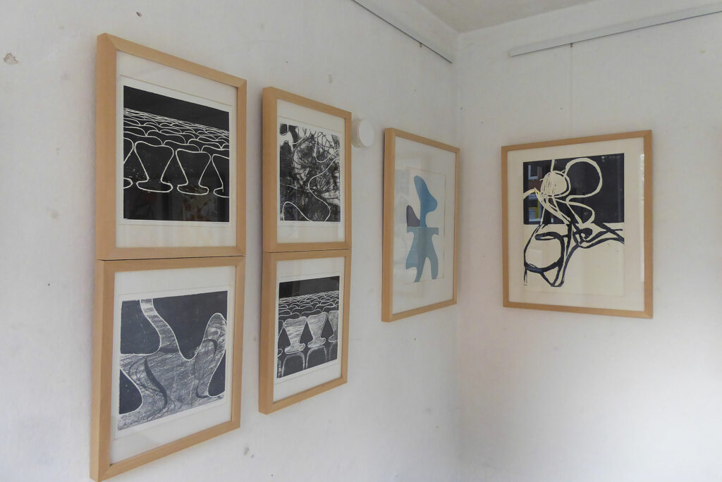 In meiner aktuellen Ausstellung „Sitzverkehrt“ zeige ich Holzschnitte und Monotypien im Waagehaus, Kölns kleinster Galerie.